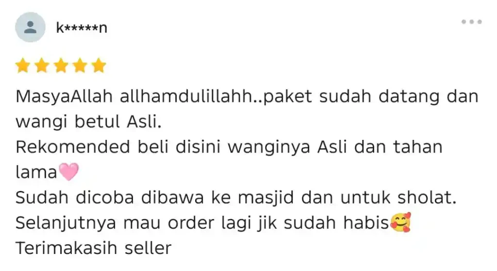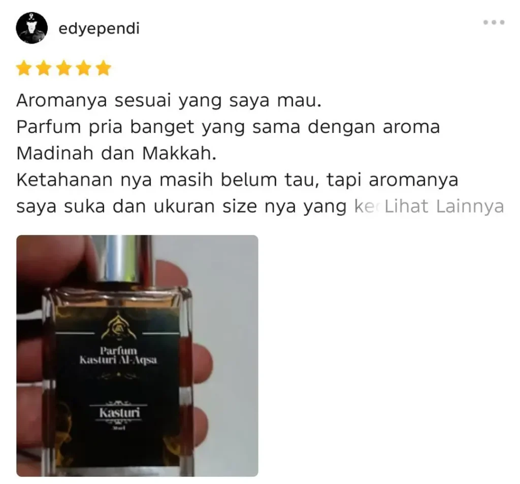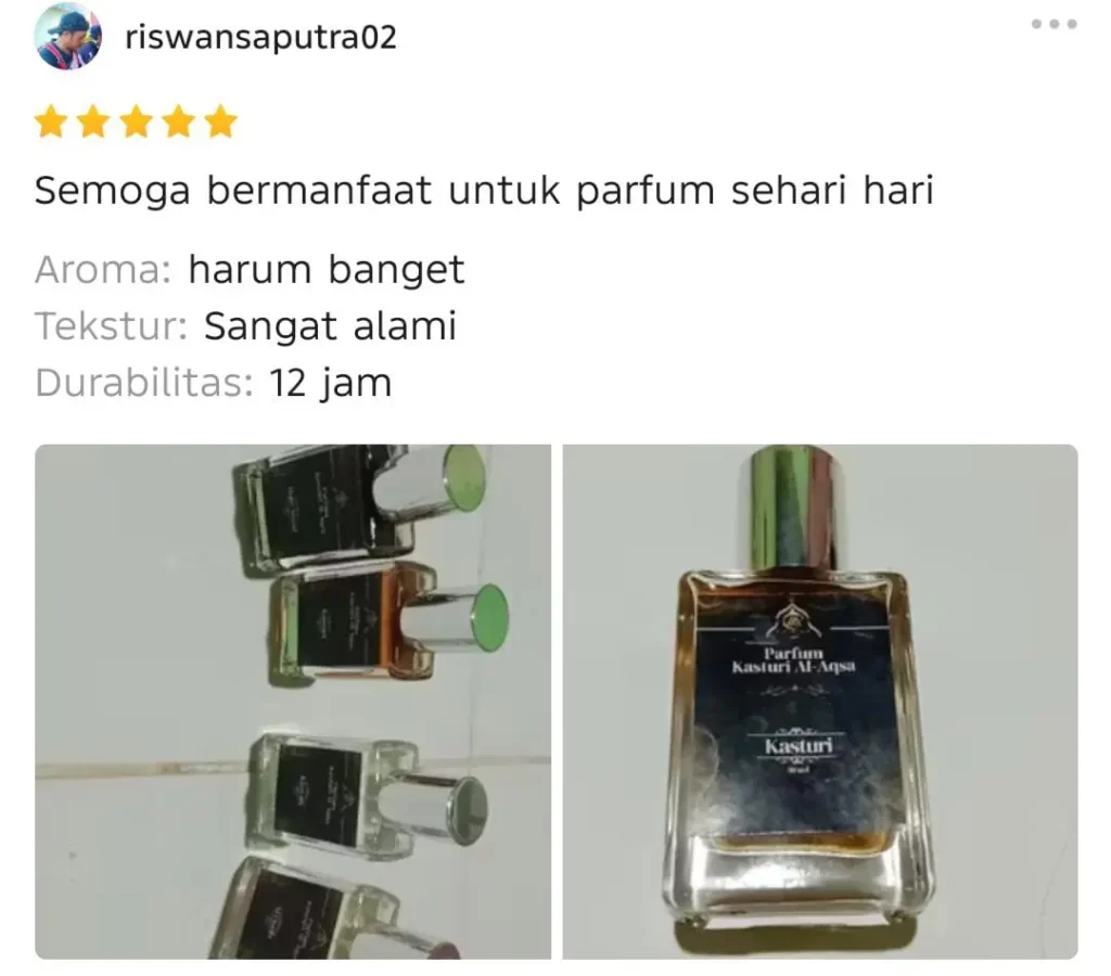 Parfum Minyak Kasturi Al – Aqso berkomitmen selain memberikan harga yang sangat murah Rp.149.000 dapat 4 botol ukuran JUMBO, kita mengedepankan kualitas dengan memberikan keharuman yang menenangkan, MasyaAllah wangi tahan lama, cocok dipakai untuk solat dan bepergian.